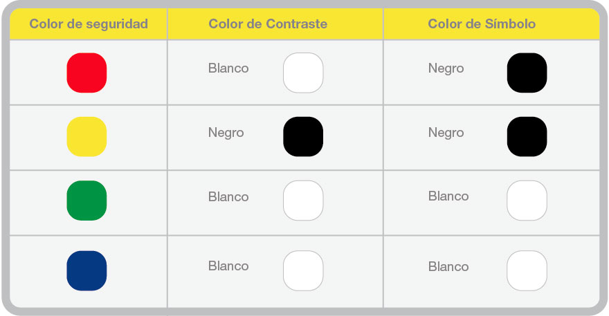 Dentro de este tipo se emplearán los colores BLANCO y NEGRO, siempre en combinación con los colores de seguridad, al objeto de mejorar las condiciones de visibilidad de éstos; asimismo, evitarán confusiones entre un color de seguridad y un color de fondo.